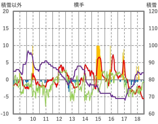 | 日 | 時 | 気温 | 降水 | 風向/風速 | 日照 | 積雪 | 降雪 |