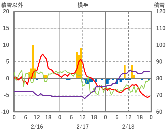 | 日 | 時 | 気温 | 降水 | 風向/風速 | 日照 | 積雪 | 降雪 |