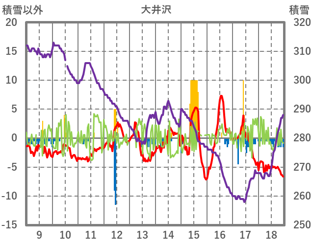 | 日 | 時 | 気温 | 降水 | 風向/風速 | 日照 | 積雪 | 降雪 |