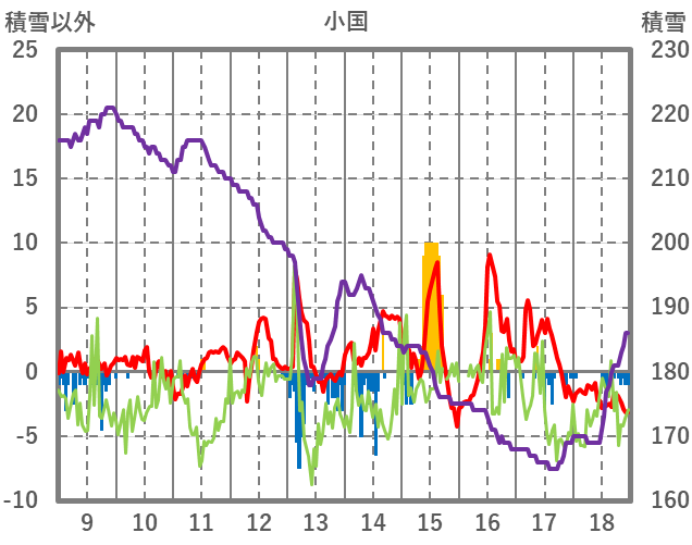 | 日 | 時 | 気温 | 降水 | 風向/風速 | 日照 | 積雪 | 降雪 |