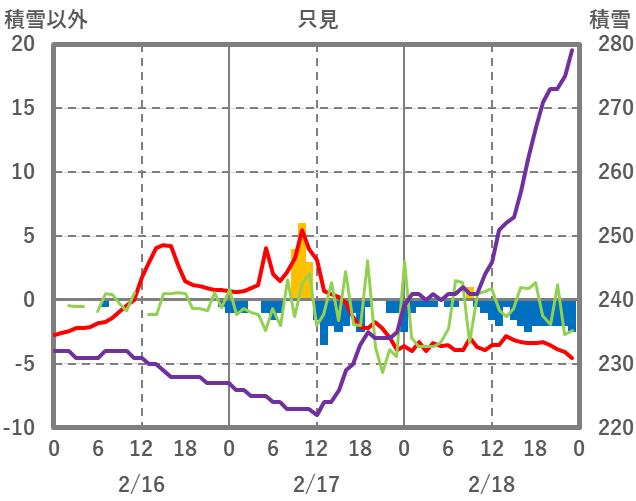 | 日 | 時 | 気温 | 降水 | 風向/風速 | 日照 | 積雪 | 降雪 |