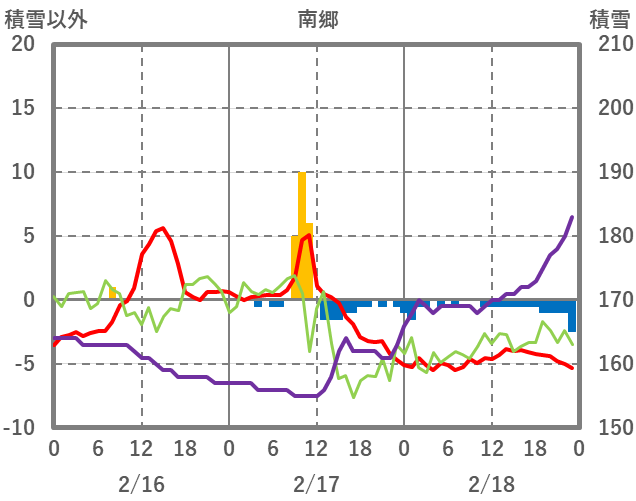 | 日 | 時 | 気温 | 降水 | 風向/風速 | 日照 | 積雪 | 降雪 |