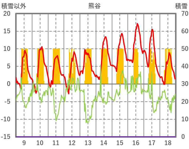 | 日 | 時 | 気温 | 降水 | 風向/風速 | 日照 | 積雪 | 降雪 |