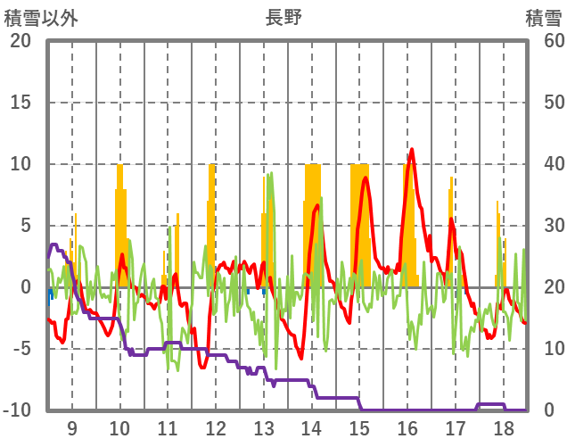 | 日 | 時 | 気温 | 降水 | 風向/風速 | 日照 | 積雪 | 降雪 |
