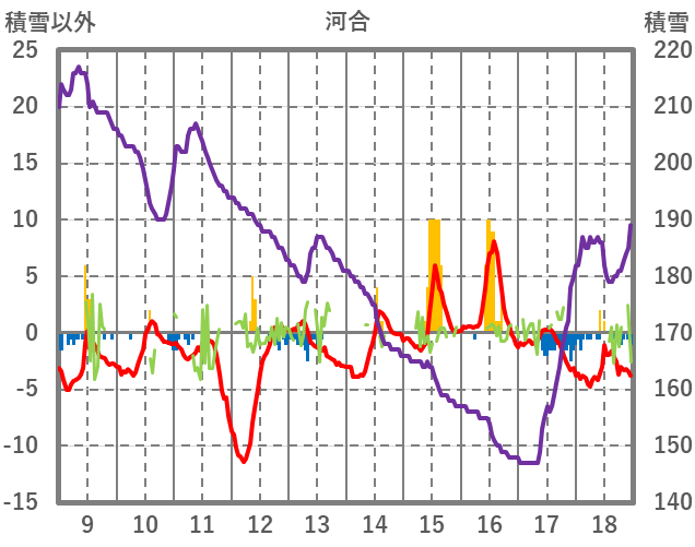 | 日 | 時 | 気温 | 降水 | 風向/風速 | 日照 | 積雪 | 降雪 |