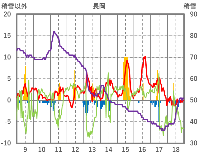 | 日 | 時 | 気温 | 降水 | 風向/風速 | 日照 | 積雪 | 降雪 |