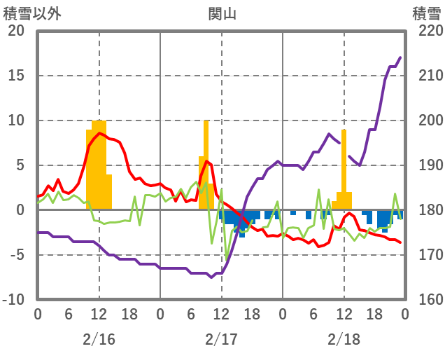 | 日 | 時 | 気温 | 降水 | 風向/風速 | 日照 | 積雪 | 降雪 |
