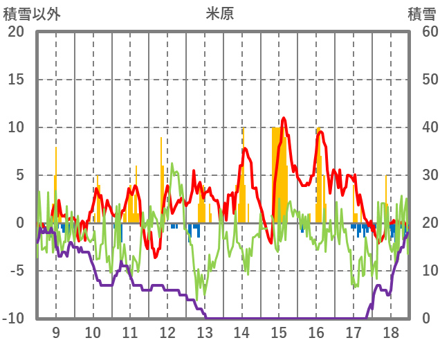 | 日 | 時 | 気温 | 降水 | 風向/風速 | 日照 | 積雪 | 降雪 |