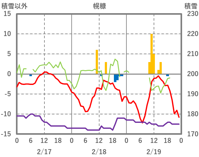 | 日 | 時 | 気温 | 降水 | 風向/風速 | 日照 | 積雪 | 降雪 |