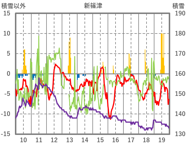 | 日 | 時 | 気温 | 降水 | 風向/風速 | 日照 | 積雪 | 降雪 |