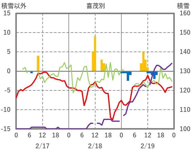 | 日 | 時 | 気温 | 降水 | 風向/風速 | 日照 | 積雪 | 降雪 |