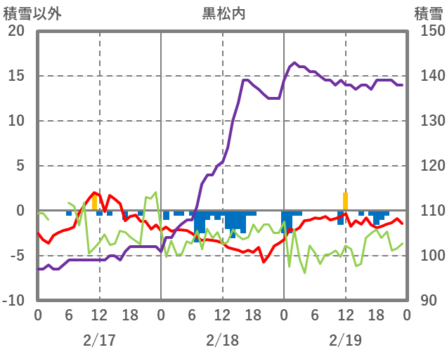 | 日 | 時 | 気温 | 降水 | 風向/風速 | 日照 | 積雪 | 降雪 |