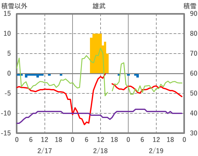 | 日 | 時 | 気温 | 降水 | 風向/風速 | 日照 | 積雪 | 降雪 |