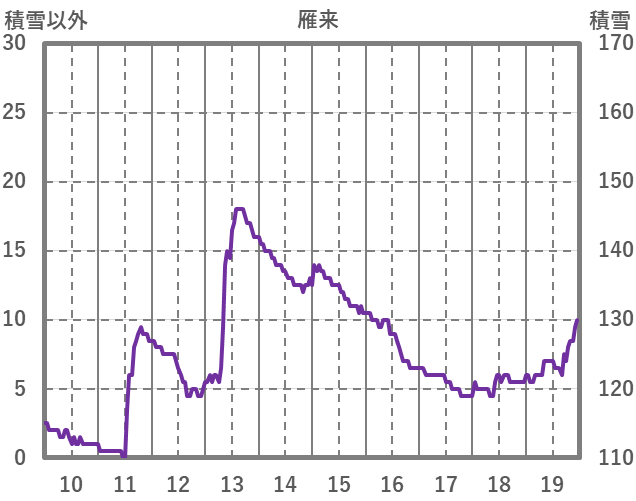 | 日 | 時 | 気温 | 降水 | 風向/風速 | 日照 | 積雪 | 降雪 |