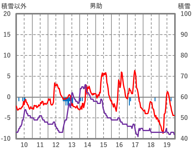 | 日 | 時 | 気温 | 降水 | 風向/風速 | 日照 | 積雪 | 降雪 |
