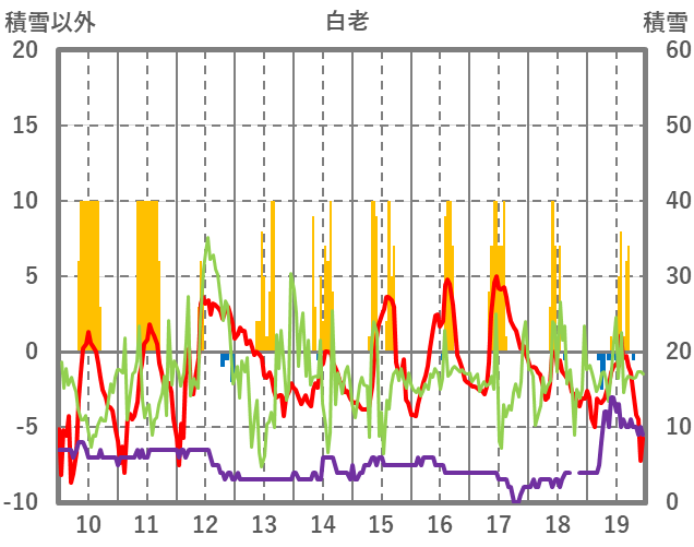| 日 | 時 | 気温 | 降水 | 風向/風速 | 日照 | 積雪 | 降雪 |