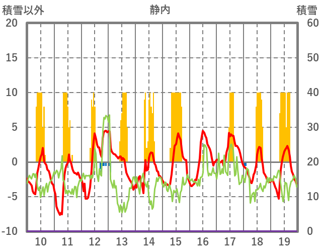 | 日 | 時 | 気温 | 降水 | 風向/風速 | 日照 | 積雪 | 降雪 |