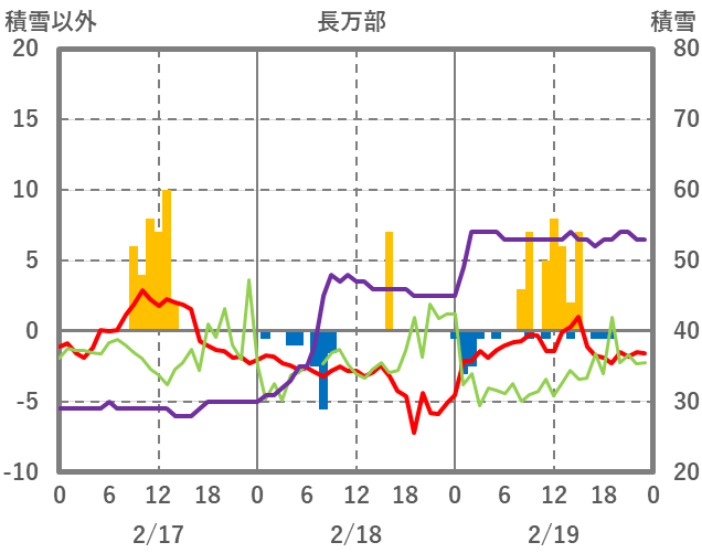 | 日 | 時 | 気温 | 降水 | 風向/風速 | 日照 | 積雪 | 降雪 |