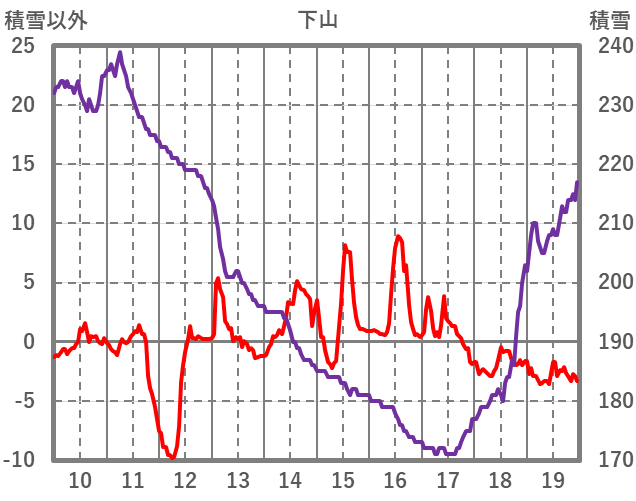 | 日 | 時 | 気温 | 降水 | 風向/風速 | 日照 | 積雪 | 降雪 |