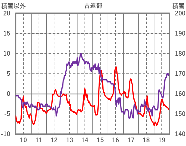 | 日 | 時 | 気温 | 降水 | 風向/風速 | 日照 | 積雪 | 降雪 |