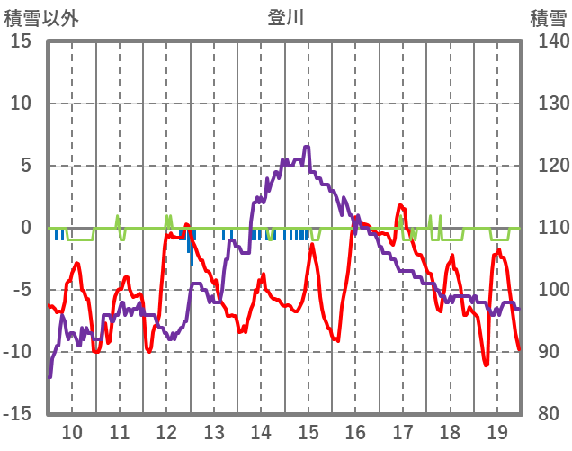 | 日 | 時 | 気温 | 降水 | 風向/風速 | 日照 | 積雪 | 降雪 |