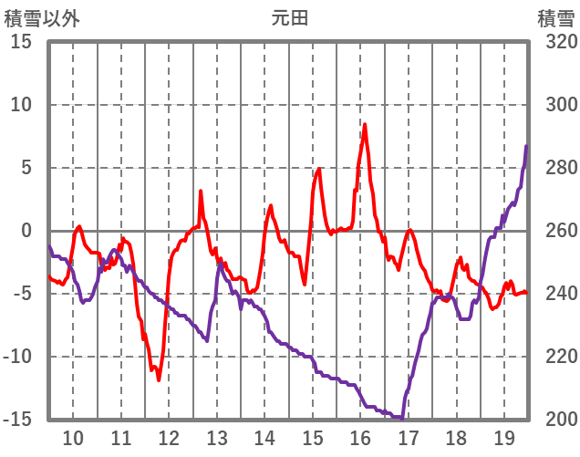 | 日 | 時 | 気温 | 降水 | 風向/風速 | 日照 | 積雪 | 降雪 |