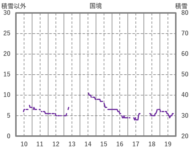 | 日 | 時 | 気温 | 降水 | 風向/風速 | 日照 | 積雪 | 降雪 |