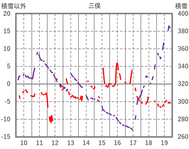 | 日 | 時 | 気温 | 降水 | 風向/風速 | 日照 | 積雪 | 降雪 |