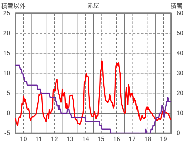 | 日 | 時 | 気温 | 降水 | 風向/風速 | 日照 | 積雪 | 降雪 |