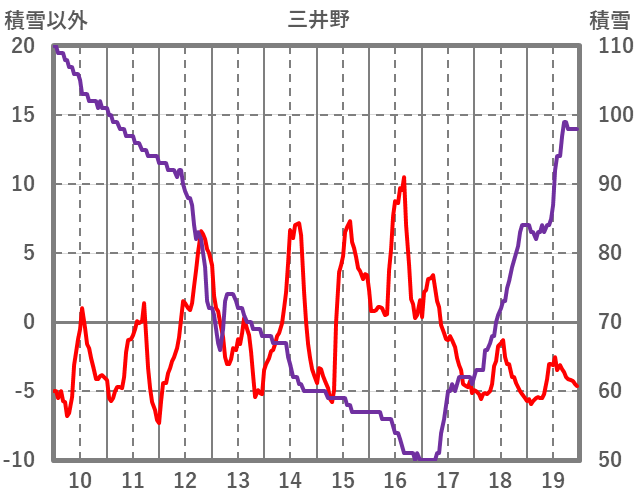 | 日 | 時 | 気温 | 降水 | 風向/風速 | 日照 | 積雪 | 降雪 |