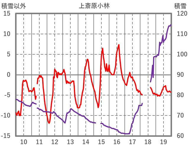 | 日 | 時 | 気温 | 降水 | 風向/風速 | 日照 | 積雪 | 降雪 |