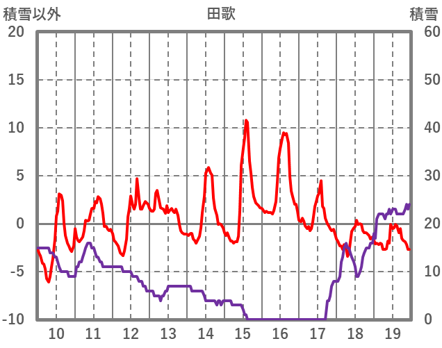 | 日 | 時 | 気温 | 降水 | 風向/風速 | 日照 | 積雪 | 降雪 |