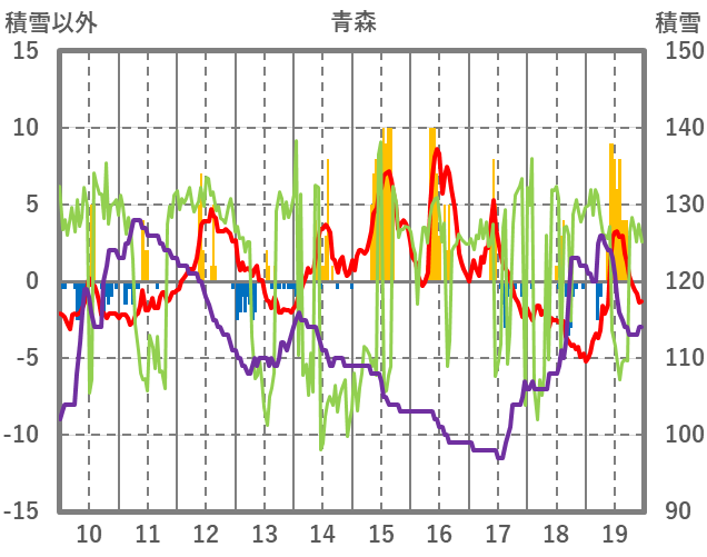 | 日 | 時 | 気温 | 降水 | 風向/風速 | 日照 | 積雪 | 降雪 |