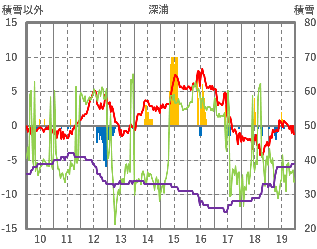 | 日 | 時 | 気温 | 降水 | 風向/風速 | 日照 | 積雪 | 降雪 |