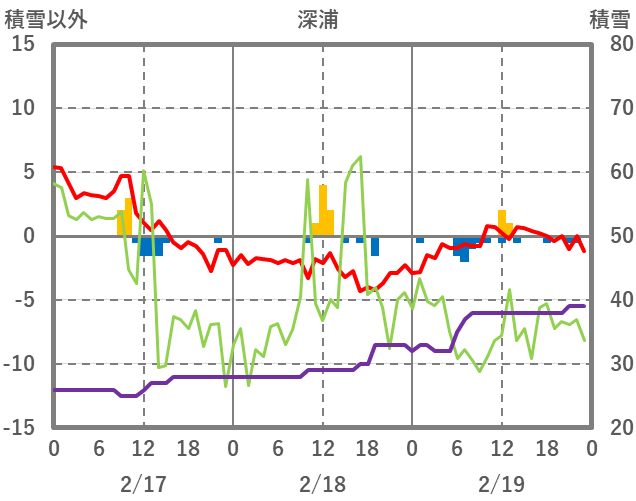 | 日 | 時 | 気温 | 降水 | 風向/風速 | 日照 | 積雪 | 降雪 |