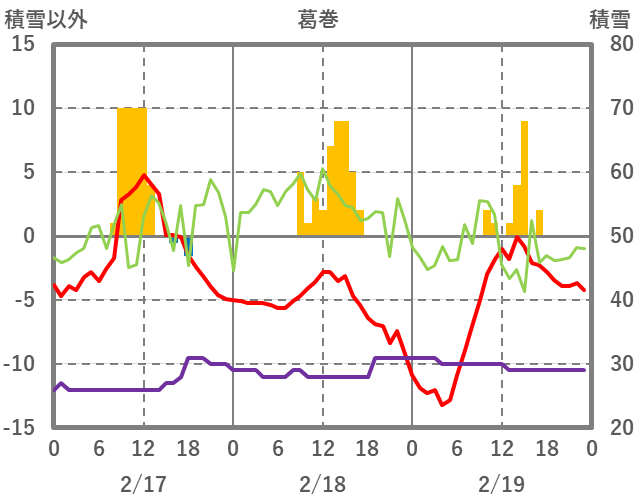 | 日 | 時 | 気温 | 降水 | 風向/風速 | 日照 | 積雪 | 降雪 |
