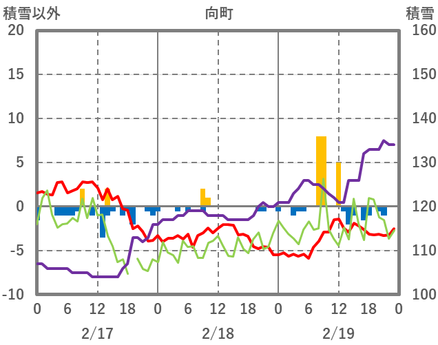 | 日 | 時 | 気温 | 降水 | 風向/風速 | 日照 | 積雪 | 降雪 |
