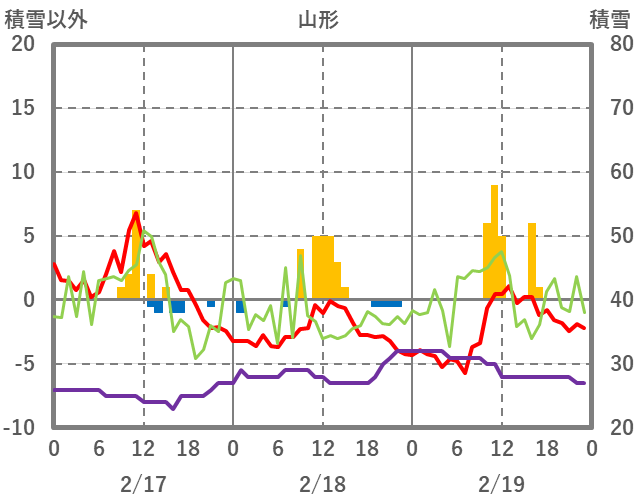 | 日 | 時 | 気温 | 降水 | 風向/風速 | 日照 | 積雪 | 降雪 |