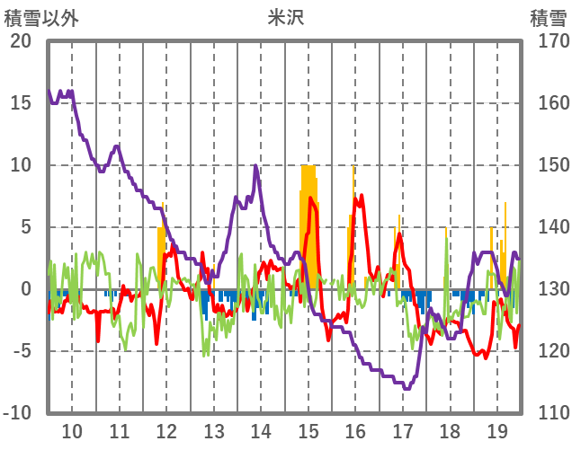 | 日 | 時 | 気温 | 降水 | 風向/風速 | 日照 | 積雪 | 降雪 |