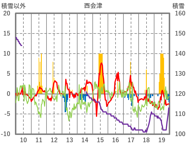 | 日 | 時 | 気温 | 降水 | 風向/風速 | 日照 | 積雪 | 降雪 |