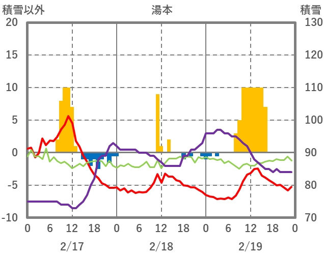 | 日 | 時 | 気温 | 降水 | 風向/風速 | 日照 | 積雪 | 降雪 |