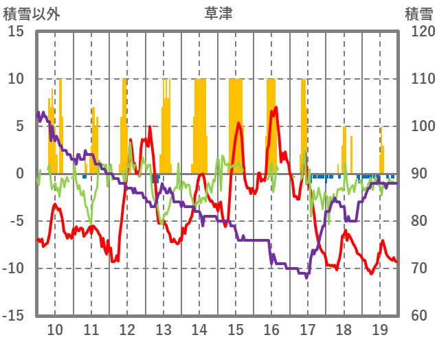 | 日 | 時 | 気温 | 降水 | 風向/風速 | 日照 | 積雪 | 降雪 |