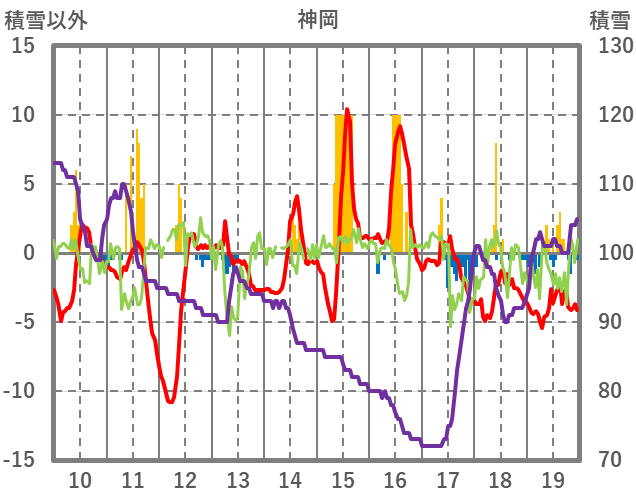 | 日 | 時 | 気温 | 降水 | 風向/風速 | 日照 | 積雪 | 降雪 |
