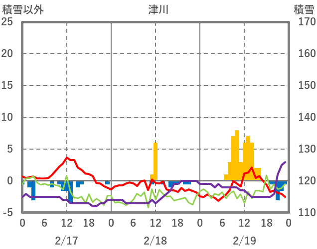 | 日 | 時 | 気温 | 降水 | 風向/風速 | 日照 | 積雪 | 降雪 |