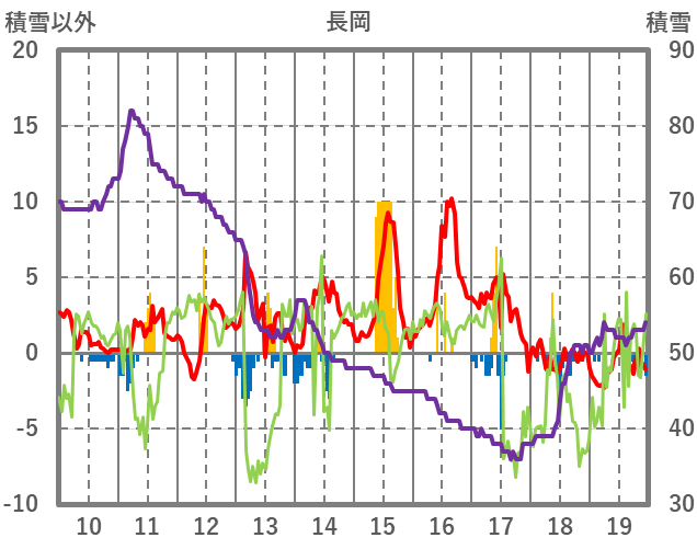 | 日 | 時 | 気温 | 降水 | 風向/風速 | 日照 | 積雪 | 降雪 |