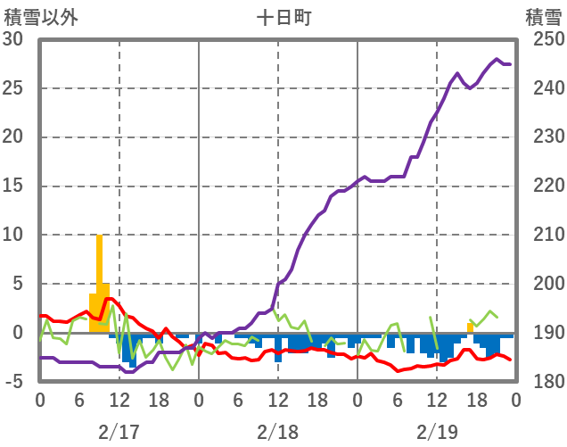 | 日 | 時 | 気温 | 降水 | 風向/風速 | 日照 | 積雪 | 降雪 |