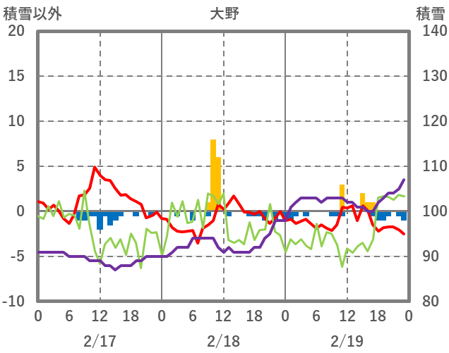 | 日 | 時 | 気温 | 降水 | 風向/風速 | 日照 | 積雪 | 降雪 |