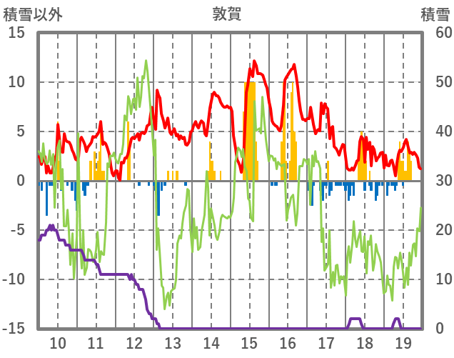 | 日 | 時 | 気温 | 降水 | 風向/風速 | 日照 | 積雪 | 降雪 |