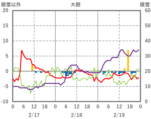 | 日 | 時 | 気温 | 降水 | 風向/風速 | 日照 | 積雪 | 降雪 |