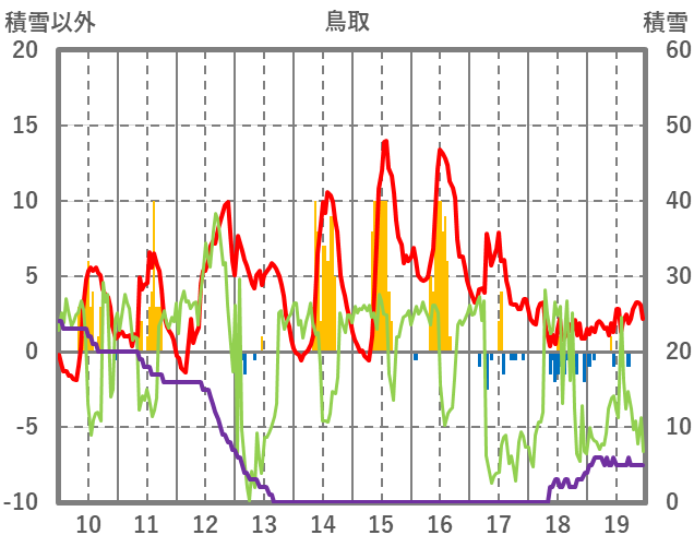 | 日 | 時 | 気温 | 降水 | 風向/風速 | 日照 | 積雪 | 降雪 |